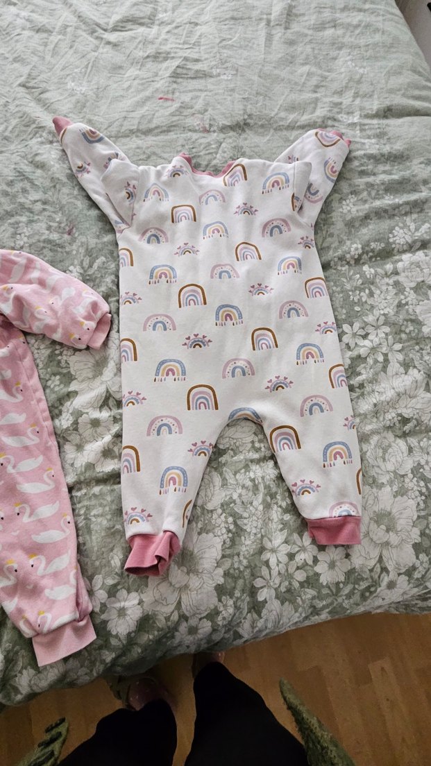 Yumuşak ve sıcak kumaştan, pastel renkli baskılı gökkuşağı desenli bebek uyku tulumu, kolay kullanım için fermuarlı. 1.6 tog degeri 1 sene kışın kullanıldı boyu uzadığı icin satıyorum sapasağlam fermuar koruması var 98 cm etiketi ile alındı 3 cm kadar çekme yaptı kurutma makinesinde ikisinin fiyatıdır.