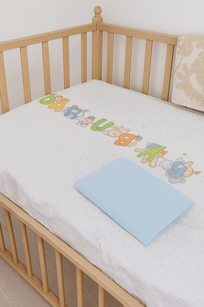 Pastel baskılı desenlere sahip beyaz sentetik kumaştan çocuk nevresim takımıdır. Fitted çarşaf ve yastık kılıfı içerir. ️hiç kullanılmadı