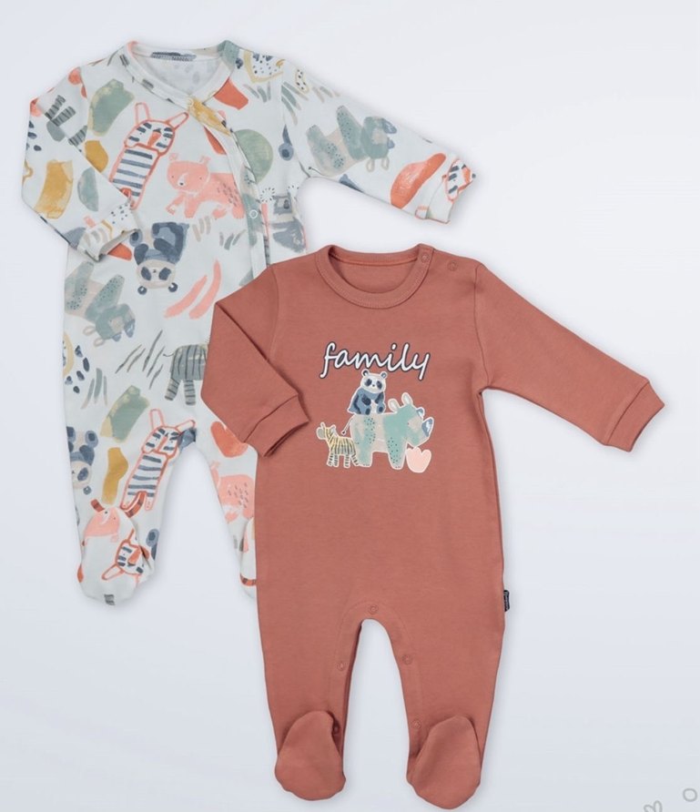 ALMADAN ÖNCE LÜTFEN BEDEN SORUNUZ Yumuşak ve sıcak kumaştan yapılmış, kahverengi 'family' baskılı tulum ve pastel renkli baskılı tulumdan oluşan bebek seti. ALMADAN ÖNCE LÜTFEN BEDEN SORUNUZ