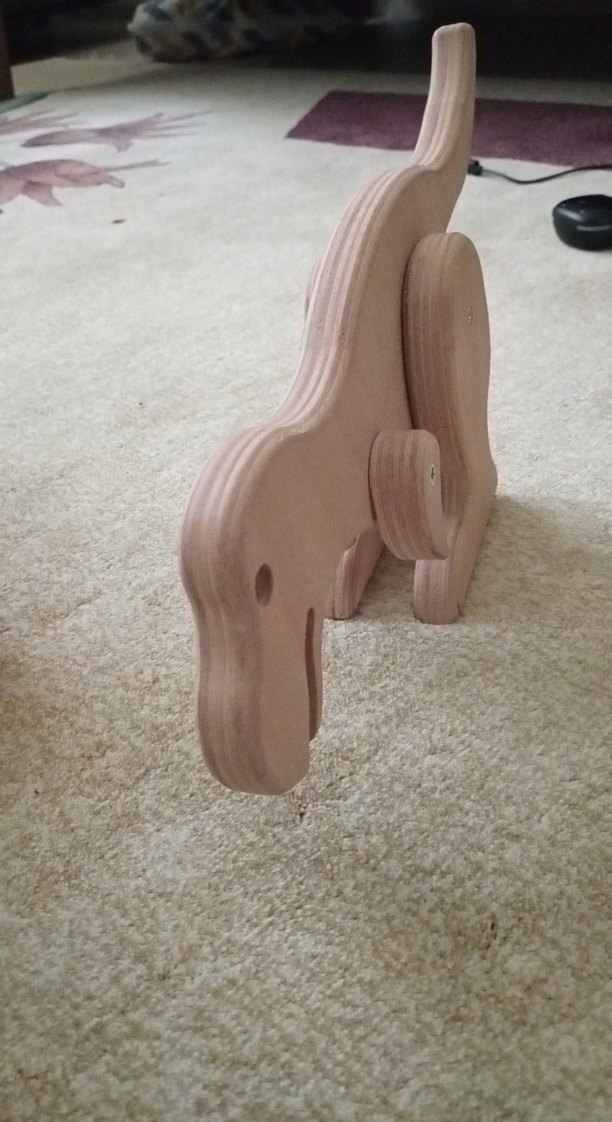 Pastel bej renkte, doğal ahşaptan yapılmış, yumuşak kenarlı ve basit tasarımlı dinozor şekilli oyuncak.