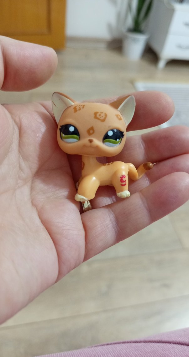 Pastel renklerde, büyük yeşil gözlü bej renkli küçük hayvan aksiyon figürü. Elinize rahatça sığar ve detaylı işaretlere sahiptir.