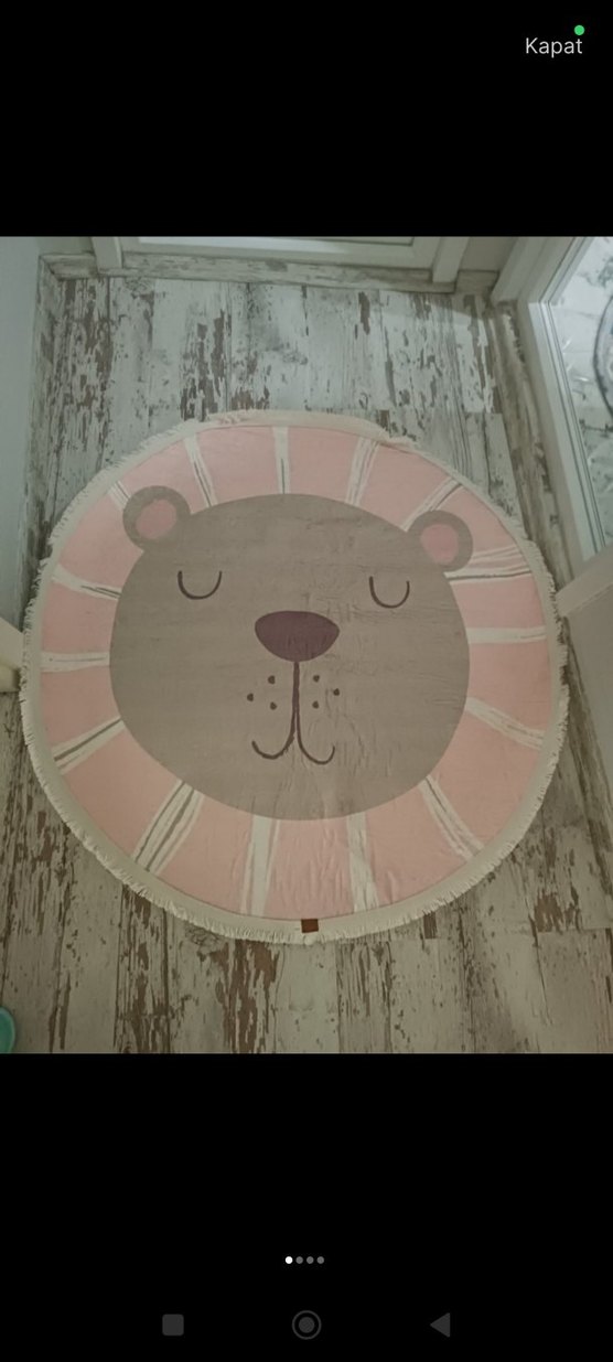Pastel bej renkli, yumuşak ve sıcak dokulu, ayı yüzü desenli bebek oyun matı, küçük çocuklar için uygundur.
