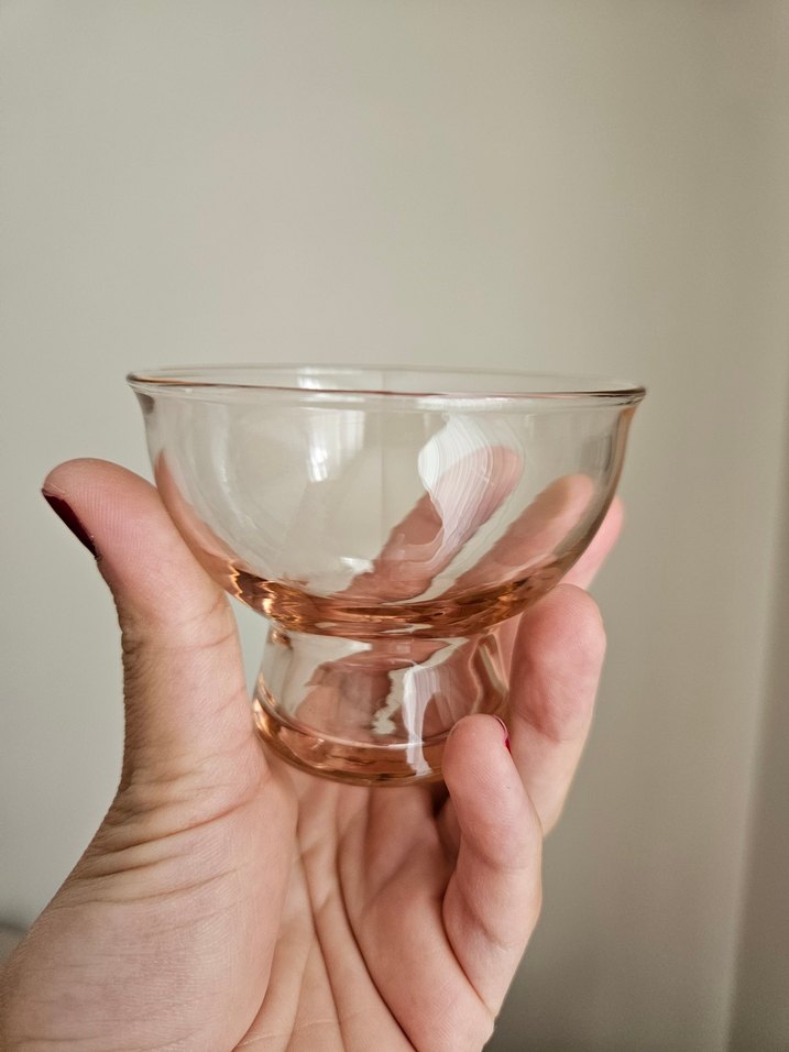 Pastel tonlarda bej renkte küçük cam kase, tatlı veya atıştırmalıklar için uygundur.