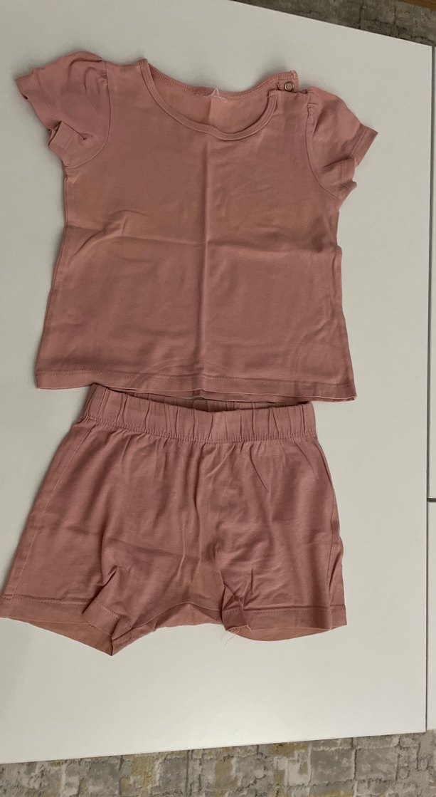Pastel bej renkte, kısa kollu üst ve lastikli şorttan oluşan çocuk içlik takımı. Rahat ve sade tasarım, günlük kullanım için uygundur.