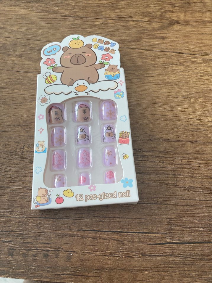 12 adet pastel bej renkli, sevimli çizgi film desenli tırnak süsü seti. Tırnaklarınıza eğlenceli bir dokunuş katar.