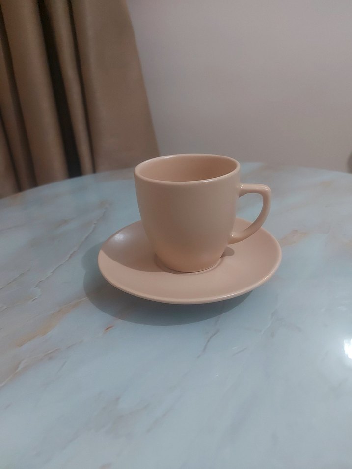 Pastel Bej Seramik Fincan ve Tabağı
