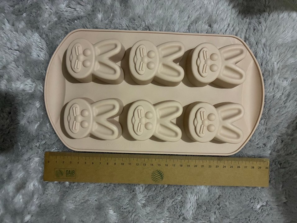 Pastel bej renkte, tavşan şekilli silikon kek kalıbı. Esnek yapısıyla kolay kullanım sağlar.