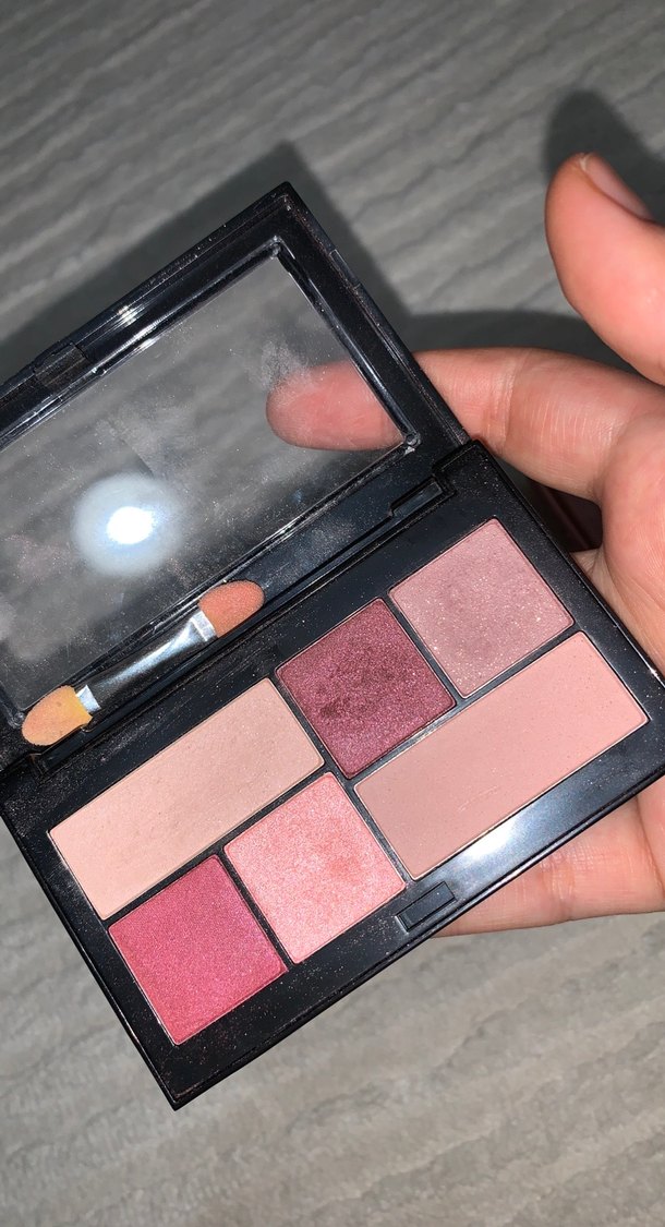 Bej ve koyu pembe tonlarında, mat ve ışıltılı dokuda altı renkli göz farı paleti. Küçük çift uçlu aplikatör içerir.