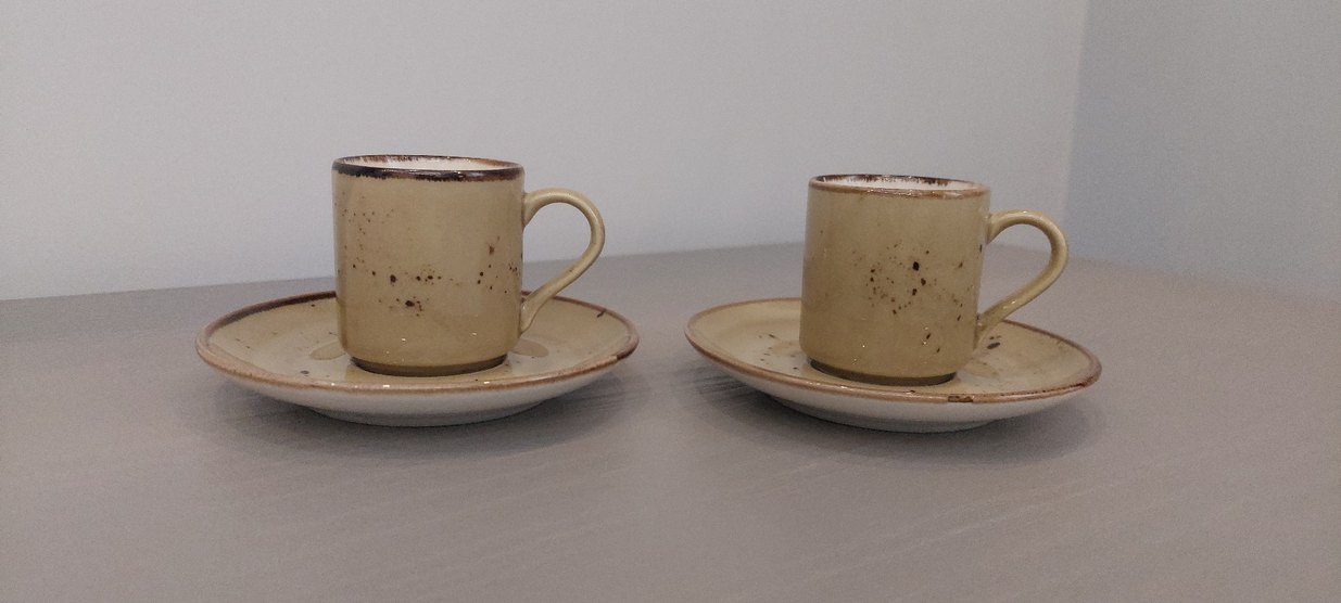 Pastel bej renkte fincan ve tabak seti. Yumuşak dokulu ve hafif benekli tasarıma sahiptir. ☕ Büyük fincanda kahve içmeyi sevdiğim için hiç kullanılmadı ihtiyaç fazlasıdır