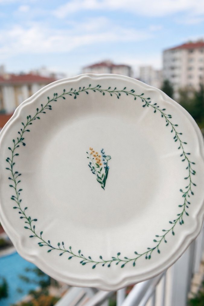 Pastel Beyaz Çiçek Desenli Tabak