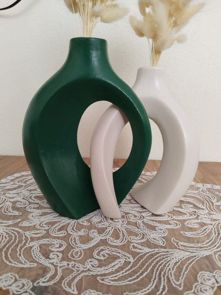Pastel beyaz renkte, boşluklu dairesel tasarıma sahip dekoratif vazo. Kurutulmuş çiçekler için uygundur ve mekâna zarif bir dokunuş katar. çiçeksiz gönderilicektir