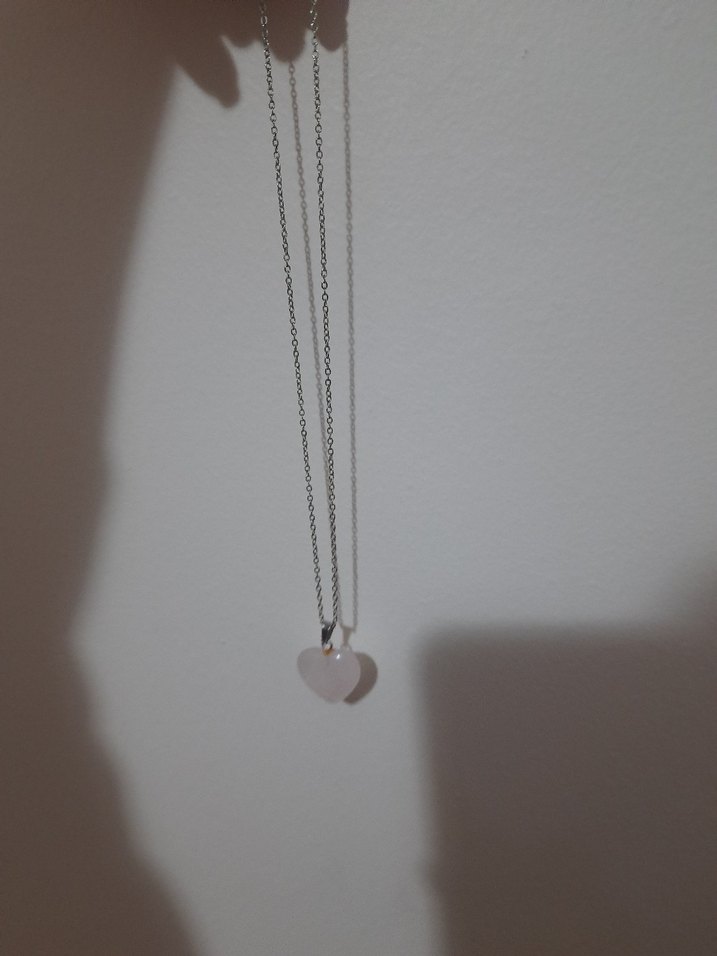 Hediye gelmiştir. Doğal taşa benzemektedir, pembe kuvars olduğu düşünülmektedir. Kullanılmamıştır. Zinciriyle birlikte gönderilecektir.