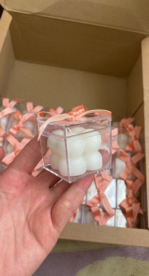 şeffaf pileksi kutuda yavruağzı renkte kurdeleli bubble mum 54 adet
