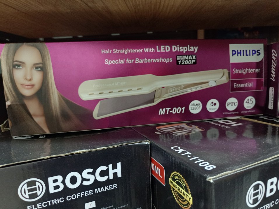 Pastel beyaz renkte, LED ekranlı saç düzleştirici. Maksimum 1280°F sıcaklığa ulaşır. Kuaförler için özel tasarlanmıştır, MT-001 modeli, MSIMAX markası. ✨