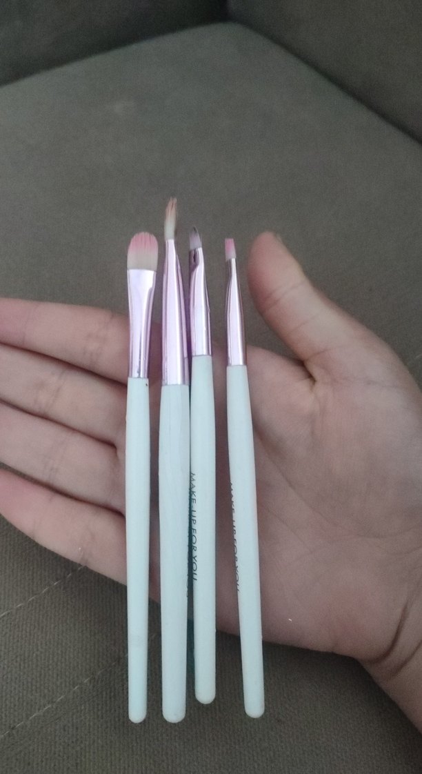 Farklı uçlara sahip dört adet pastel beyaz makyaj fırçası seti. Yumuşak kıllar ve rahat saplar içerir.