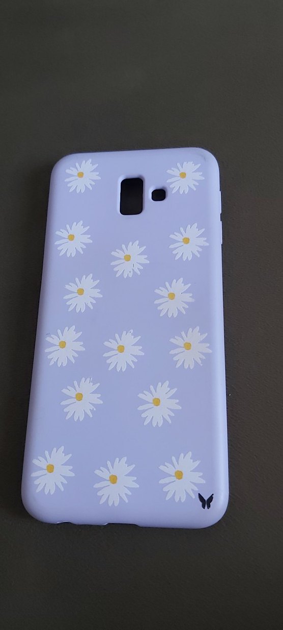 Pastel beyaz renkte, papatya desenli ve dantel detaylı telefon kılıfı. Karşı kültür stilini yansıtan yumuşak bir görünüm sunar. J6 plus markasıdır.