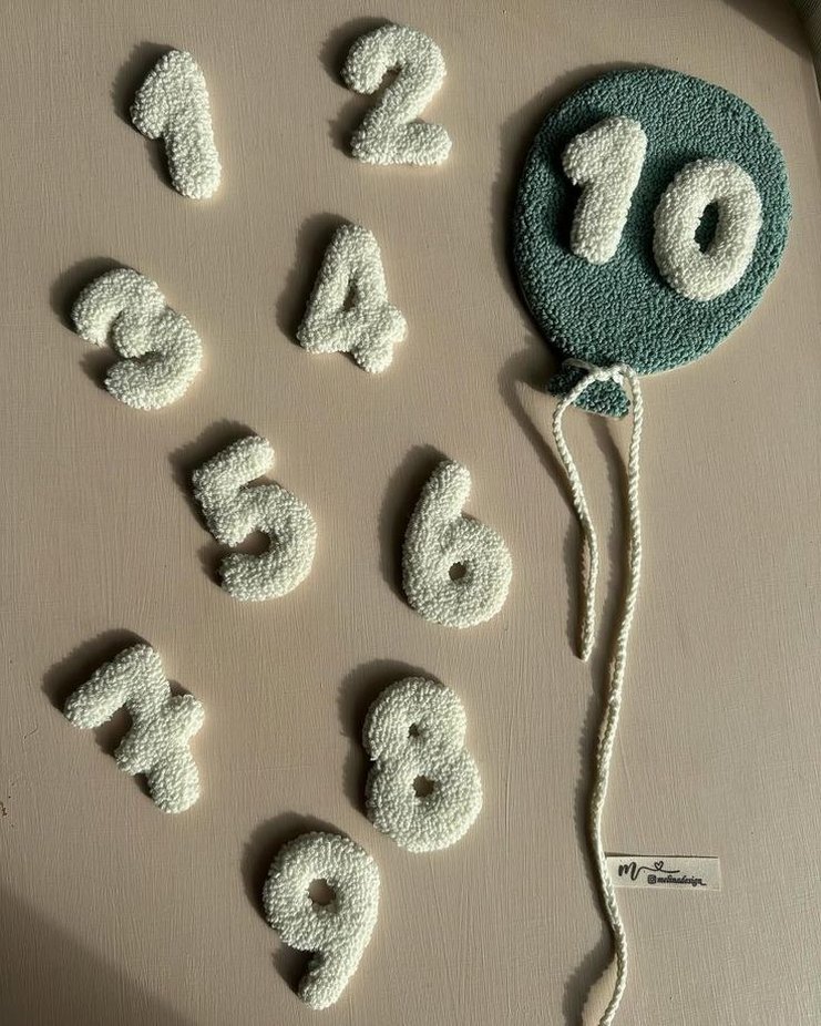 1'den 10'a kadar pastel beyaz renkte, sayılardan oluşan yumuşak dokulu bebek aylık çekim seti