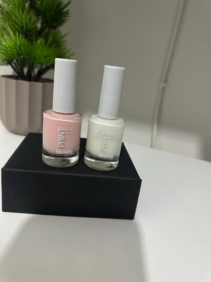 Pastel beyaz ve pembe renkte, pürüzsüz bitişli oje. Beyaz kapaklı klasik cam şişede sunulur.