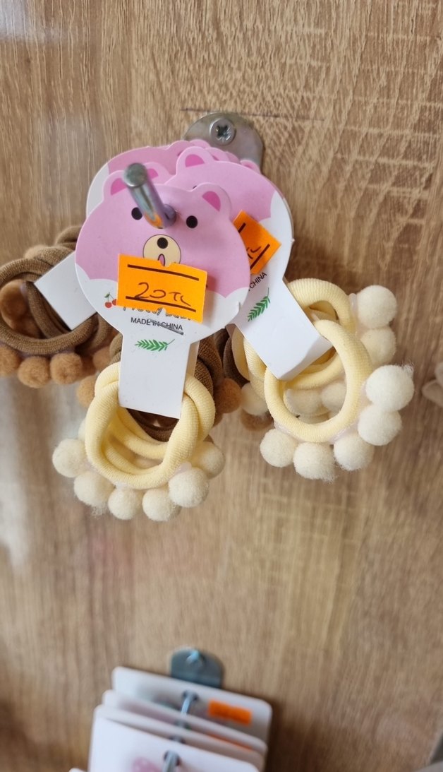 Pastel bej renginde, bohem tarzda elastik saç tokaları, yumuşak ponpon detaylarıyla çocuklar için uygun.