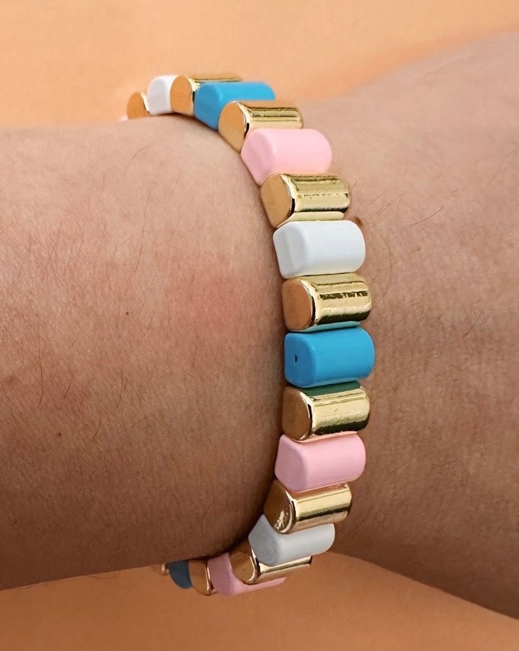 Pastel renklerde boncuklardan oluşan, günlük kullanıma uygun çağdaş ve minimalist tarzda kadın bilekliği.