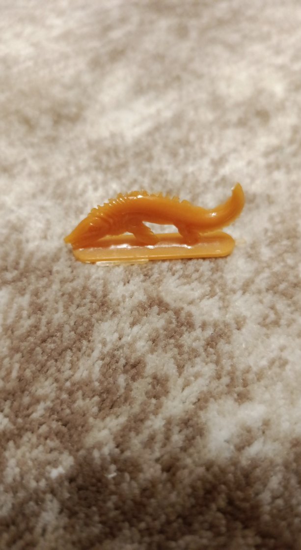 Pastel camel renginde, sürüngen veya dinozor şeklinde küçük bir aksiyon figürü, pürüzsüz yüzeye sahip.