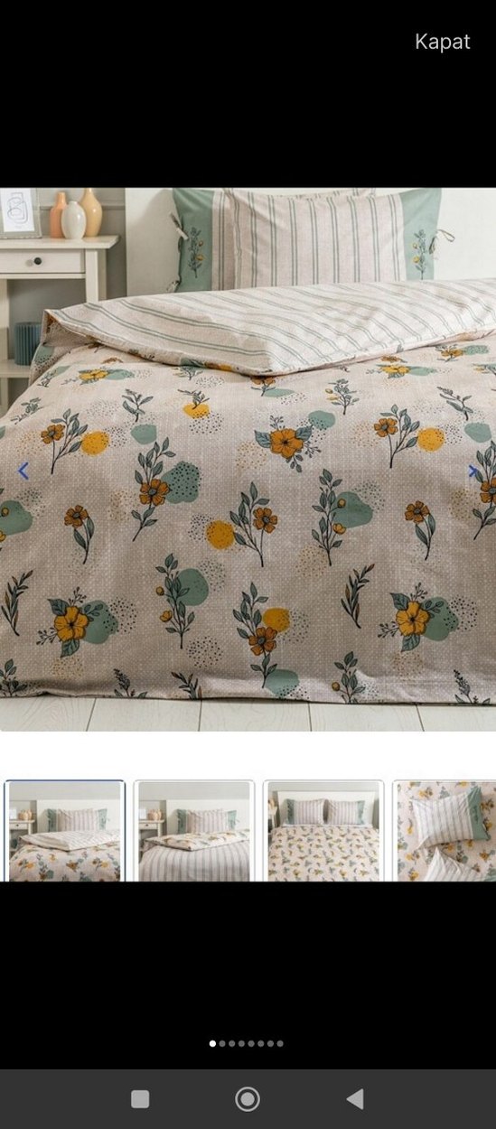 Bej renkte, sarı ve yeşil tonlarında pastel çiçek desenli, yumuşak ve davetkar bir görünüme sahip nevresim takımı.