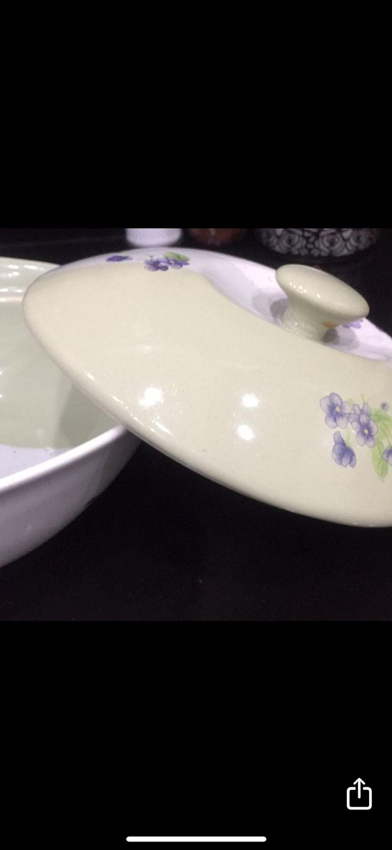 Pastel çiçek desenli beyaz tabak, uyumlu kapağıyla sofranıza zarif bir dokunuş katıyor.
