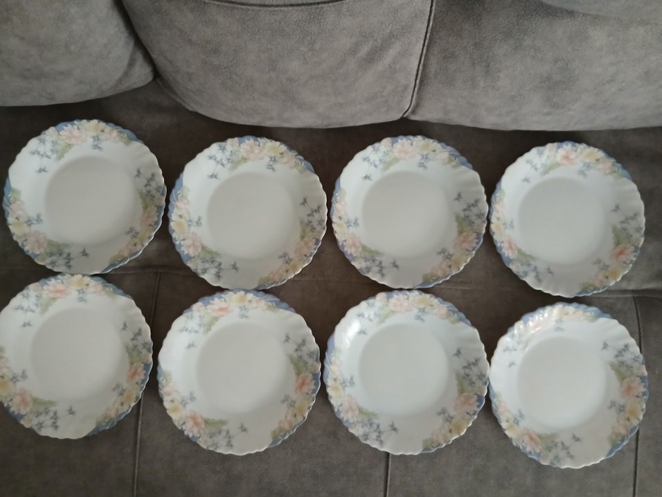 Pastel renklerde çiçek desenli beyaz tabak seti, kenarlarında yumuşak ve zarif renkler bulunur. Yemek servisi için uygundur. ️FİYAT 8 adet içindir.