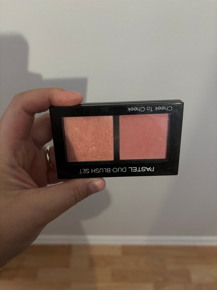 Pastel çiftli allık seti, doğal bir ışıltı için iki açık ton içerir.