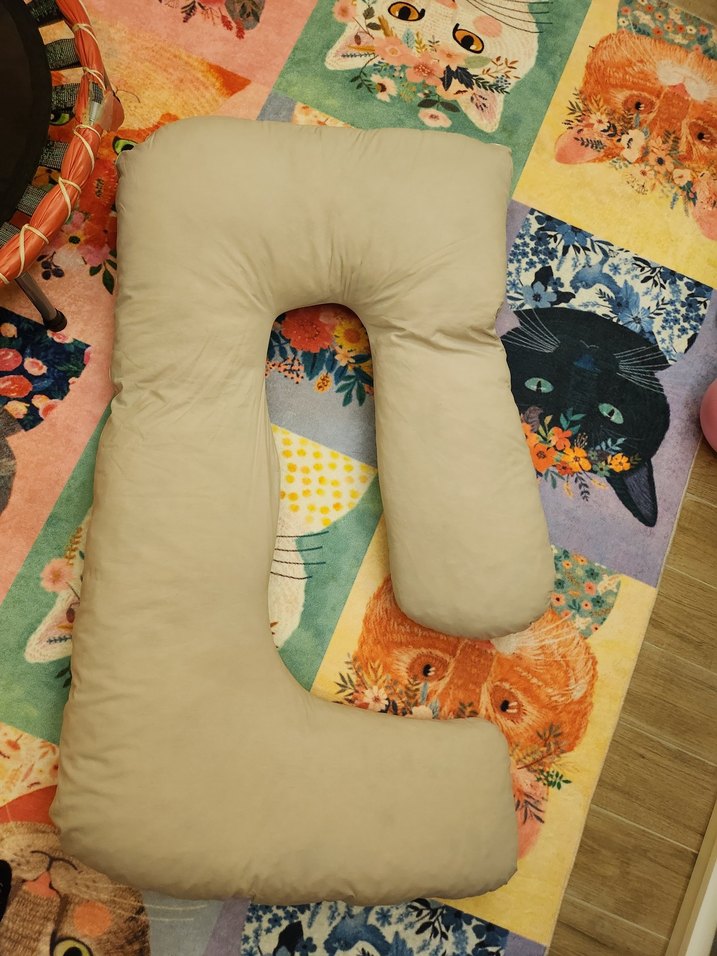 Pastel tonlarda, çok renkli desenli hamile ve emzirme yastığı, rahat destek sağlar.