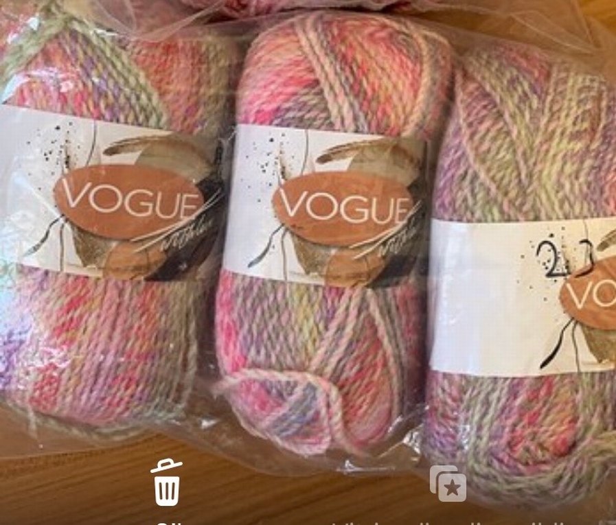 VOGUE etiketli, bağlama desenli pastel çok renkli el işi yünü.