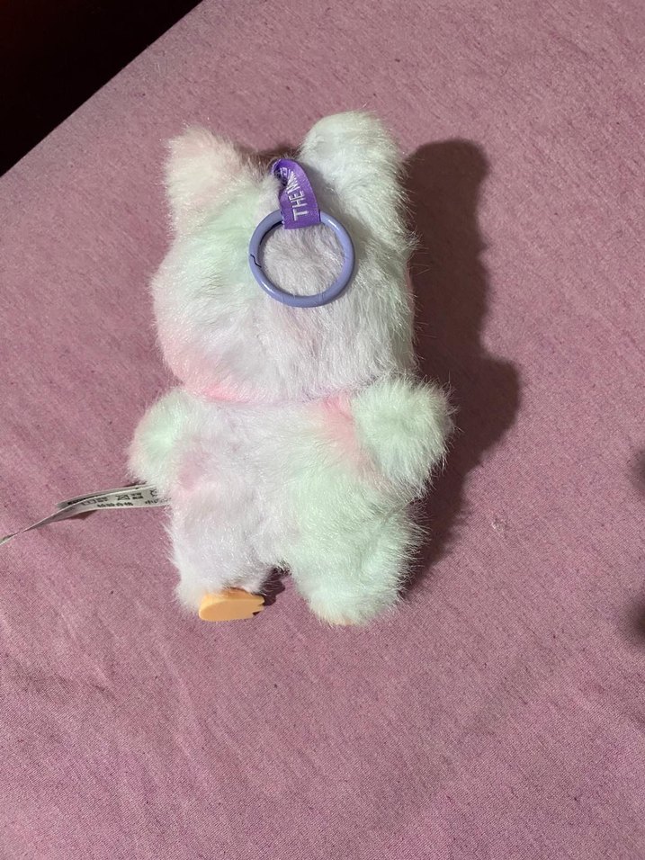 Yumuşak, pastel çok renkli peluş labubu anahtarlık, küçük bir halka ile taşıma kolaylığı sağlar