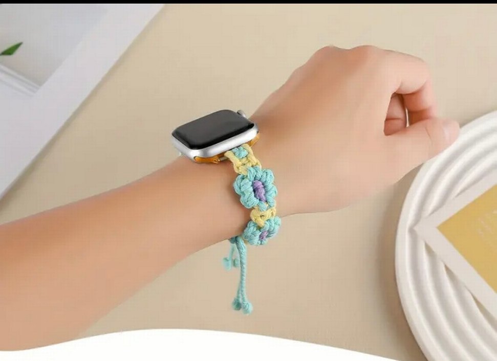 Pastel çok renkli, çiçek desenli örgülü akıllı saat kayışı, yumuşak ve şık bir görünüm sunar. İki farkı rengi mevcuttur. 38-40-41 mm için uygundur.
