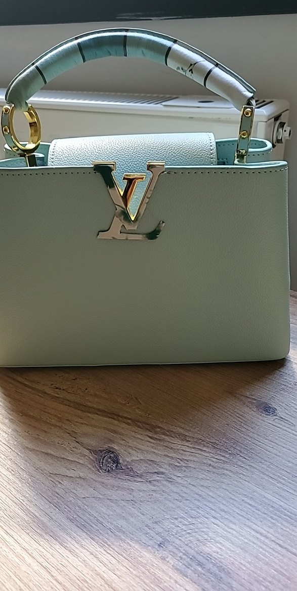 Pastel deri çanta, tokalı sapı ve baskılı deseniyle minimalist, çağdaş ve klasik şıklığı yansıtıyor.