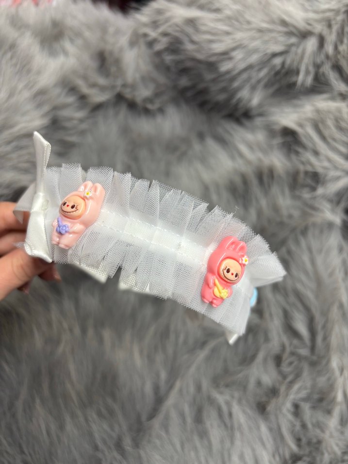 Bej renkli saç bandı, elastik yapısı ve pastel desenli sevimli domuz figürleriyle çocuklar için uygun.