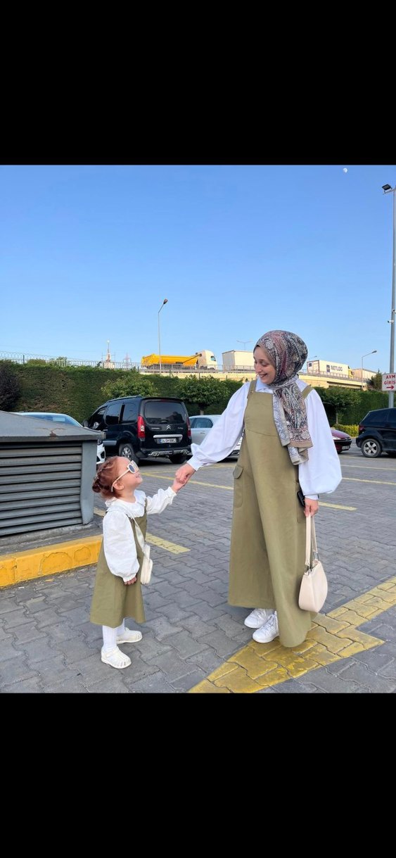 Pastel Haki anne kız kombini elbisesi ( 4 5 yaş ve Standart Anne