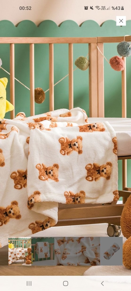 Yumuşak ve sıcak çocuk battaniyesi, pastel kahverengi ayıcık desenlidir. Rahat ve konforlu fleece kumaş kullanılmıştır.
