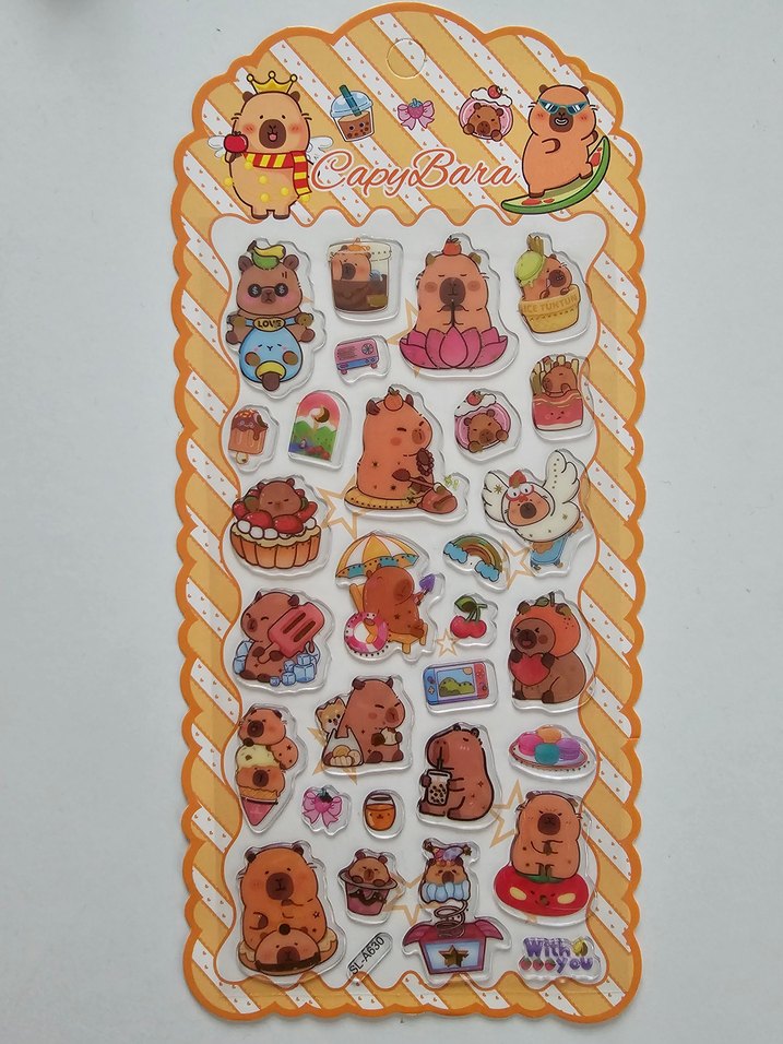 Pastel kahverengi tonlarında, farklı aktivitelerde Capybara karakterlerinin yer aldığı sevimli çıkartma seti. Çıkartmalar şeffaftır. Sıfır üründür.