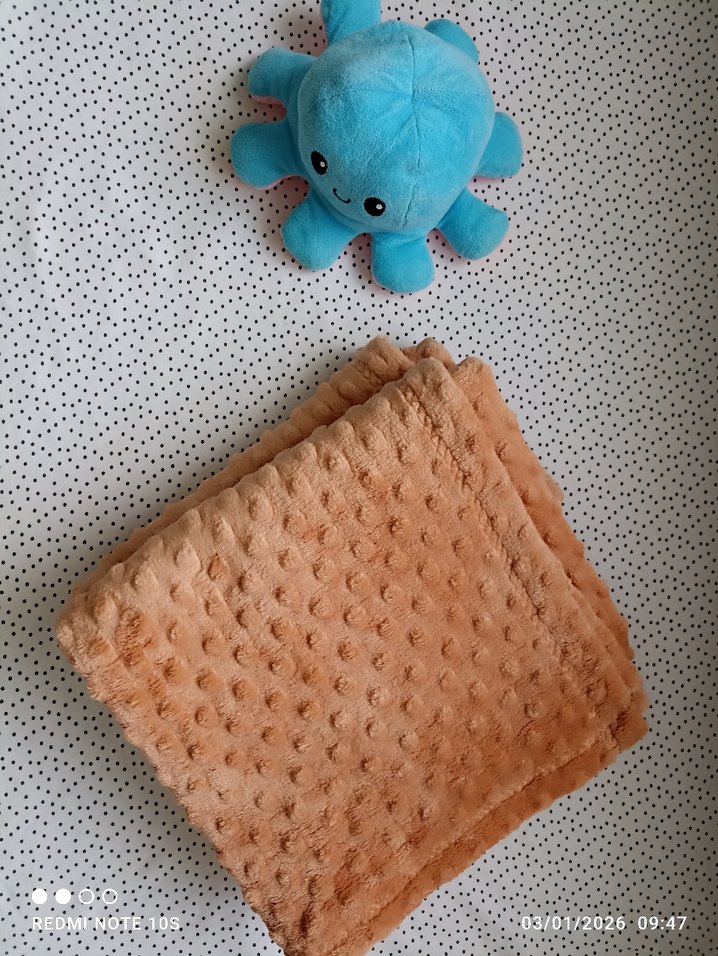 Pastel kahverengi, yumuşak ve sıcak dokulu çocuk battaniyesi. Rahat anlar için ideal. 90 cm*110 cm