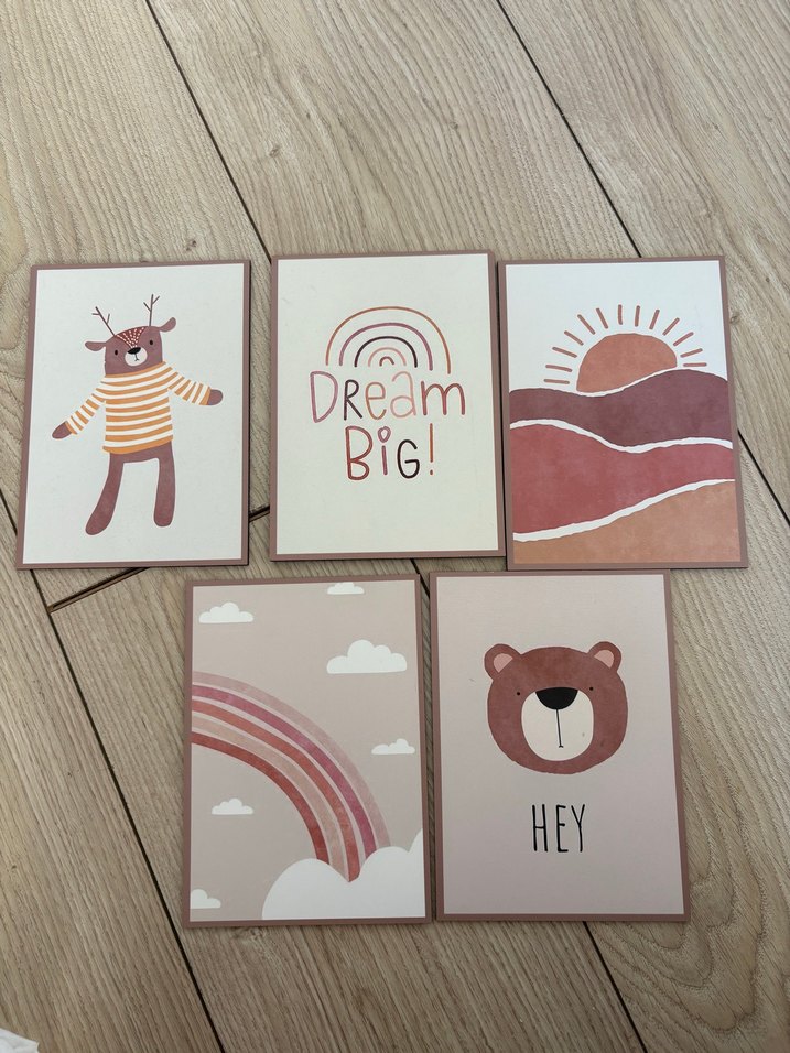 Pastel kahverengi çocuk bulmacası, ayı, gökkuşağı, güneş ve 'Dream Big!' ile 'HEY' yazılı beş parçadan oluşur. Arkasında yapışkan yoktur