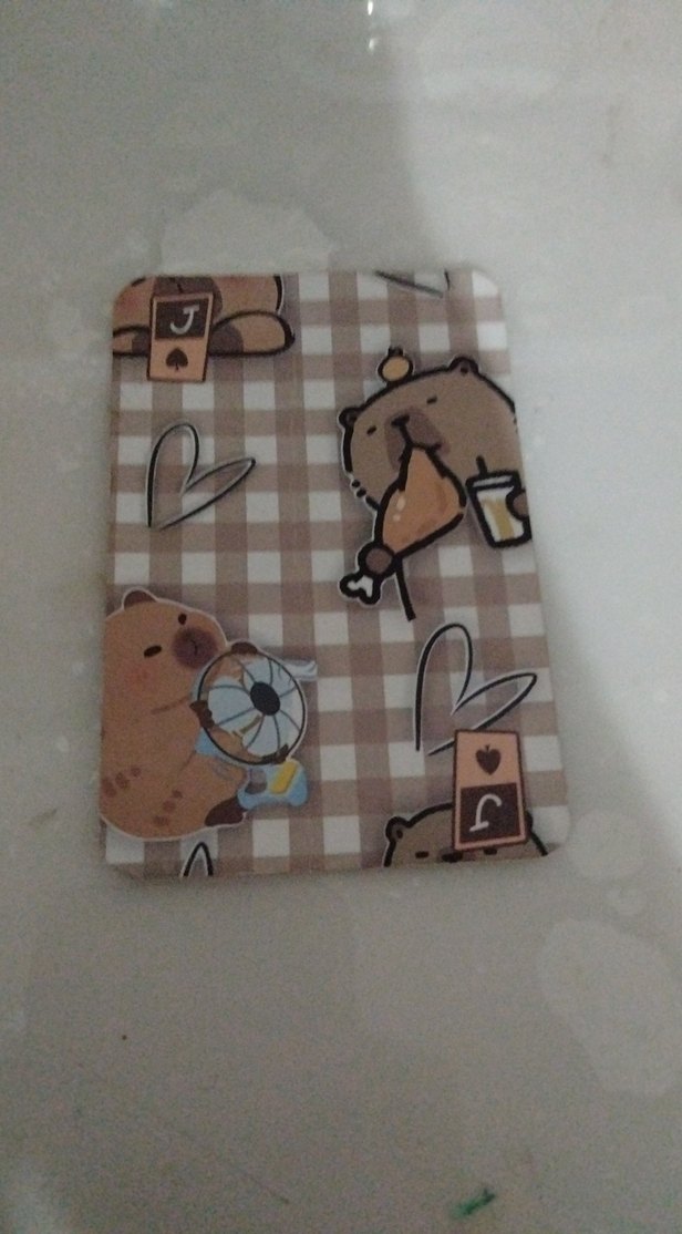 Pastel kahverengi, kareli desenli ve sevimli ayı figürleri bulunan mouse pad.