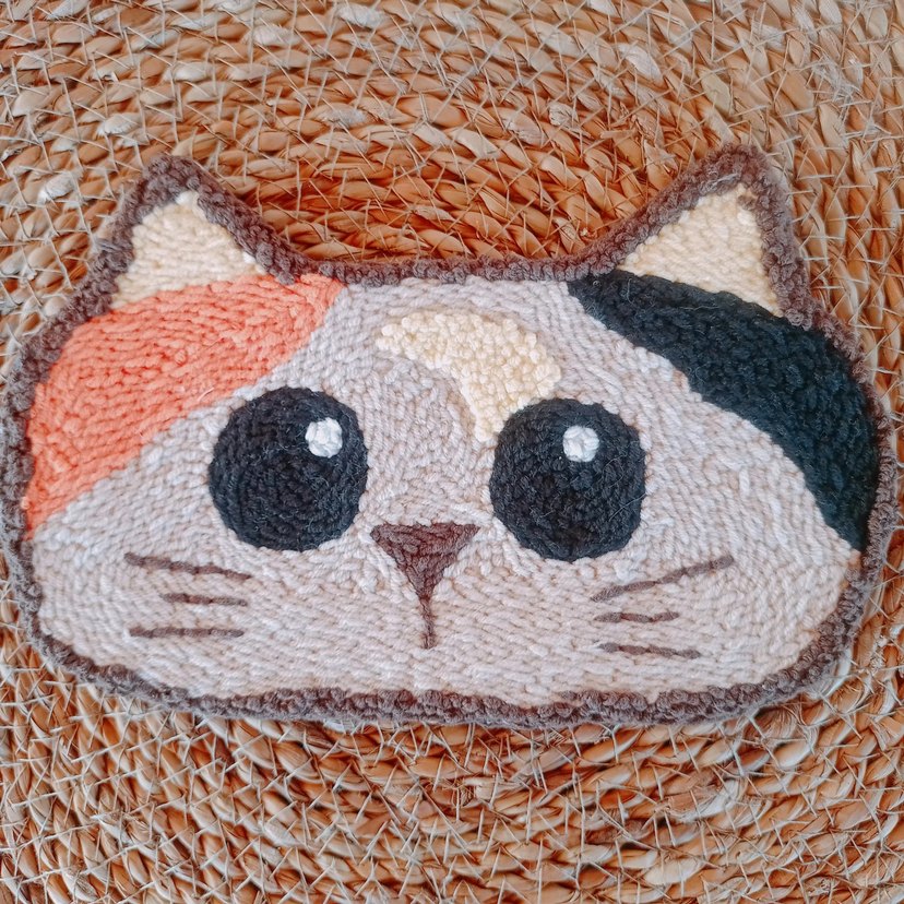 Pastel kahverengi, büyük gözlü sevimli kedi yüzü tasarımlı yumuşak dokulu Glasses rug