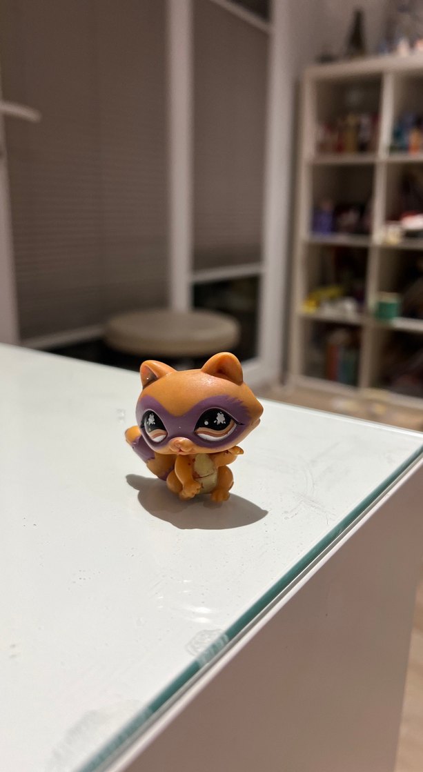 Pastel kahverengi, mor maskeli ve büyük gözlü figür, koleksiyon veya sergileme için uygun.