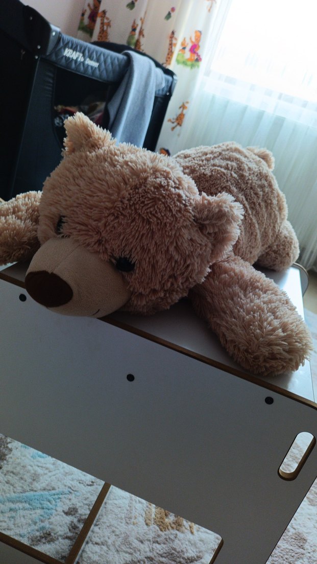 Yumuşak ve kabarık dokusuyla pastel kahverengi peluş ayı oyuncak, rahatlık ve dekorasyon için uygun.