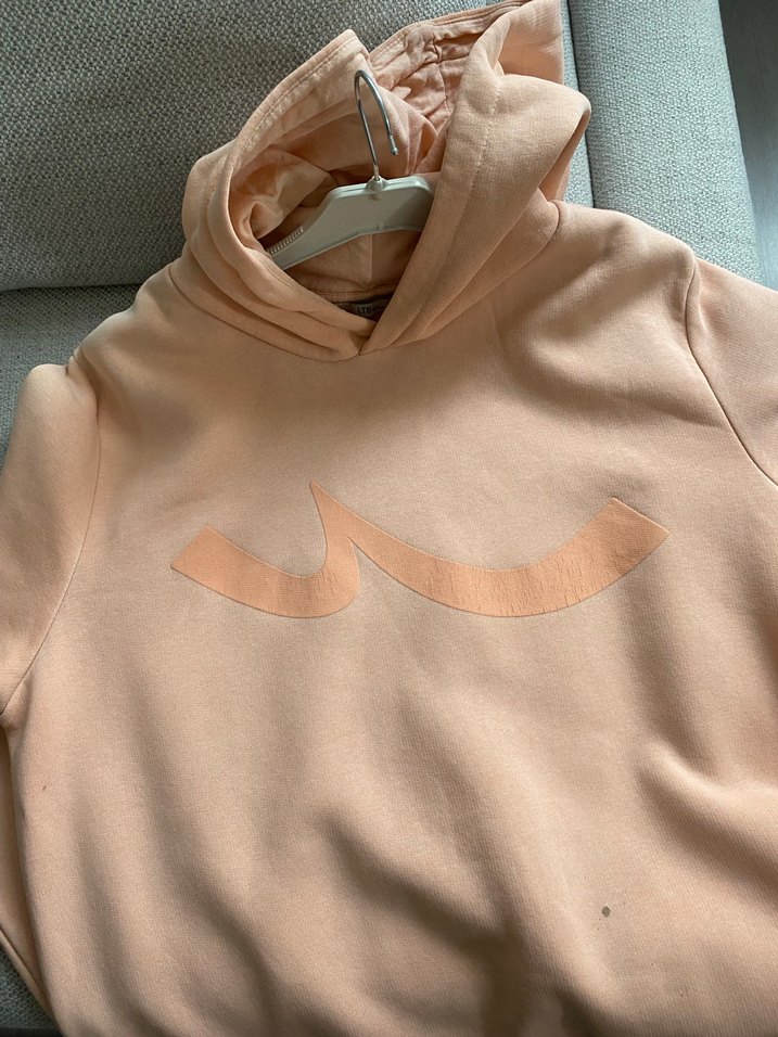 Pastel pembe renkli, kapüşonlu ve uzun kollu sweatshirt, yumuşak ve sıcak kumaştan, rahat bir loose fit ile tasarlanmıştır. Pastel tonu günlük kullanıma uygun şık bir dokunuş sağlar. Önde lekesi vardır.