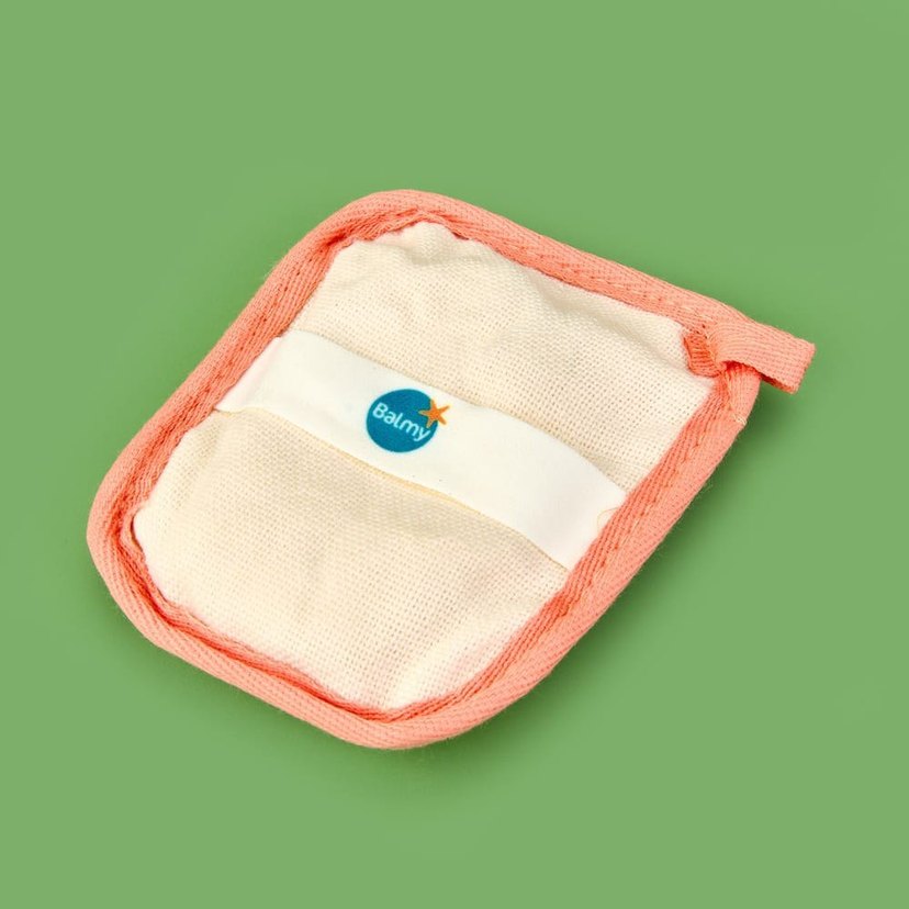 Pastel renk kenarları ve tutma bandı olan beyaz banyo süngeri. Yumuşak dokusu ile nazik temizlik sağlar.