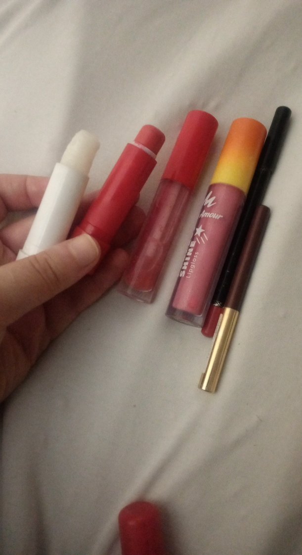 Pastel kırmızı tonlarında ruj, lip balm, gloss ve eyeliner içeren makyaj seti. Yumuşak ve canlı renk seçenekleri sunar.