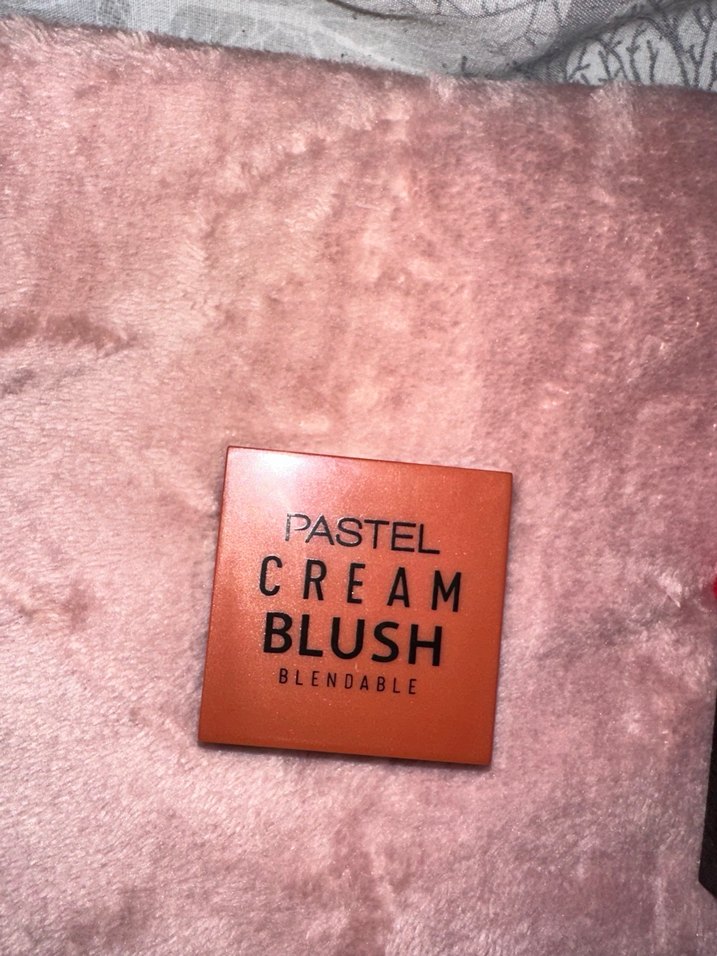 Pastel bej krem allık, kolayca karıştırılabilir ve doğal bir görünüm sağlar. Üzerinde 'CREAM BLUSH BLENDABLE PASTEL' yazmaktadır.