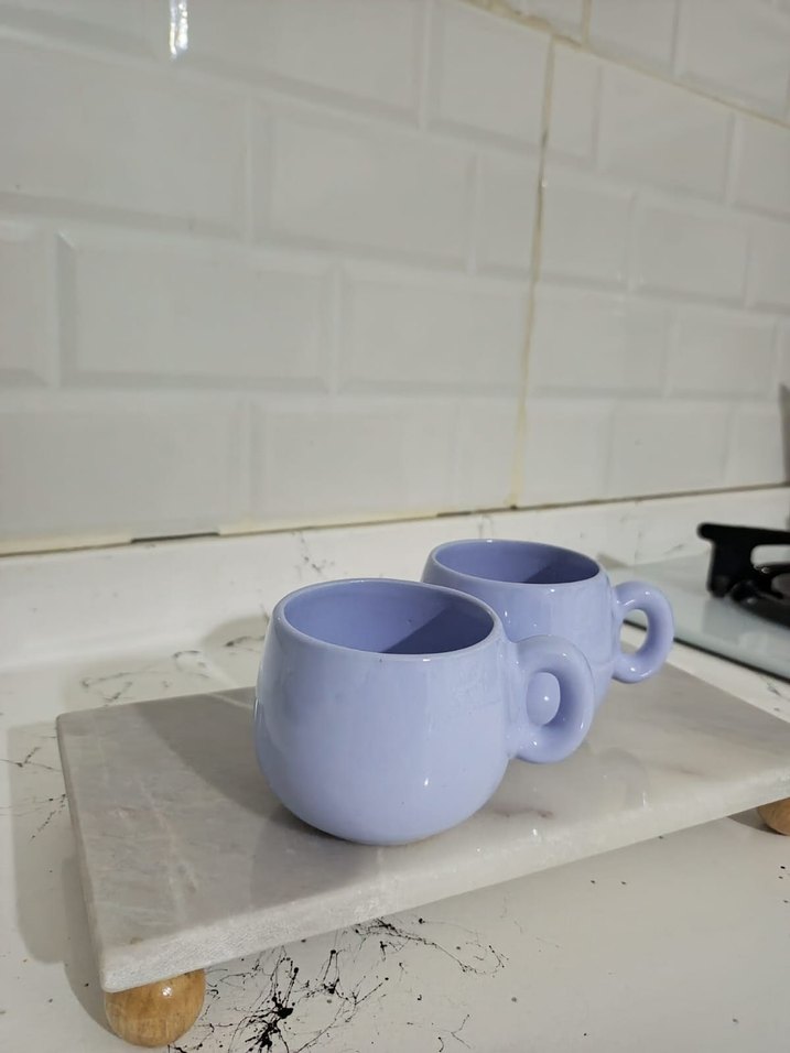 Pastel lila renkte, yuvarlak kulplu iki adet fincan seti. Pürüzsüz yüzeyiyle masanıza zarif bir dokunuş katıyor. ☕