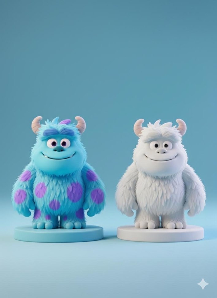 Boynuzlu, tüylü mavi ve beyaz aksiyon figürleri, yuvarlak tabanlar üzerinde duruyor. Yumuşak ve sevimli görünüme sahip.